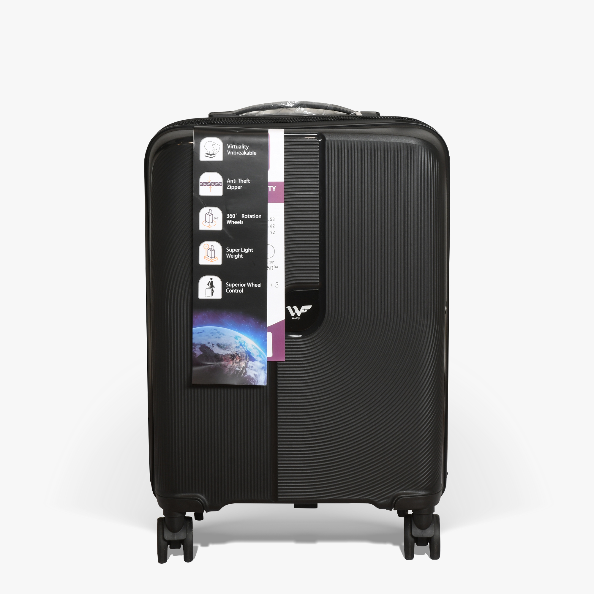 Avec WE FLY, vous profitez non seulement de l’élégance immédiate de votre bagage, mais aussi de la tranquillité d’esprit grâce à notre garantie 3 ans sur les 4 roues.
